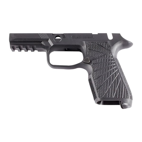Revolutionize your shooting experience and upgrade the concealed carry potential of a SIG-SAUER P320 with the black Wilson Combat WCP320 manual safety compact grip module. Their all-new molded polymer grips will not only improve your grasp on the gun but also control recoil better than before. Wilson Combat SIG SAUER Grip Modules are not compatible with California versions of the SIG SAUER P320. Revolutionize your shooting experience and upgrade the concealed carry potential of a SIG-SAUER P320 with Wilson Combat's reengineered grip frame. Their molded polymer grips will not only improve your grasp on the gun but also control recoil better than before. With its redesigned shape, texture, and ergonomics, these six new models are designed to give you that custom handcrafted feel in no time at all—available in both black or tan shades for standard-size frames as well as those equipped with manual safeties! Their fresh look at the P320 grip module incorporates the suggestions of tactical trainers, champion shooters, and firearms experts into the final product that has a look that is unmistakably "Wilson". They believe it is the most practical, comfortable, and stylish P320 grip available and the ideal choice for concealed carry and defensive handgun use. FEATURES Safety (select): Manual Safety, No Manual Safety Colors (select): Black, Gray, Green, Tan Caliber availability: 9mm, .40 S&W, .357 SIG Upgraded, high cut 1911 style beavertail grip tang for smooth draws Modified backstrap shape for more natural pointing and enhanced grip/recoil Undercut front-strap and reshaped, radiused trigger guard for the highest grip possible Improved grip traction and increased grip pattern coverage with Wilson Combat's exclusive Starburst grip pattern on the sides and aggressive texturing on the front and backstrap Internal slots for rod-style Tungsten weights (NW734) Not compatible with X-Five Tungsten weights Factory SIG-SAUER magazine release, spring, and lock included Compatible with all standard holsters Important Note: Wilson Combat SIG SAUER Grip Modules are not compatible with California versions of the SIG SAUER P320. SPECS Typical Usage: Competition, Practice, Self Defense, Tactical, Target Firearm Type: Handgun Handgun Type: Sig P320 Compact Manufacturer: Wilson Combat Handgun Parts Type: Grip Modules Disclaimer: "SIG" is a federally registered trademark of SIG SAUER Inc. and is one of many trademarks owned by SIG SAUER Inc. Neither Wilson Combat nor this website is affiliated in any manner with or otherwise endorsed by SIG SAUER Inc. The use of "SIG" or "SIG SAUER'' on this page is merely to advertise the sale of SIG pistols, parts, or components.