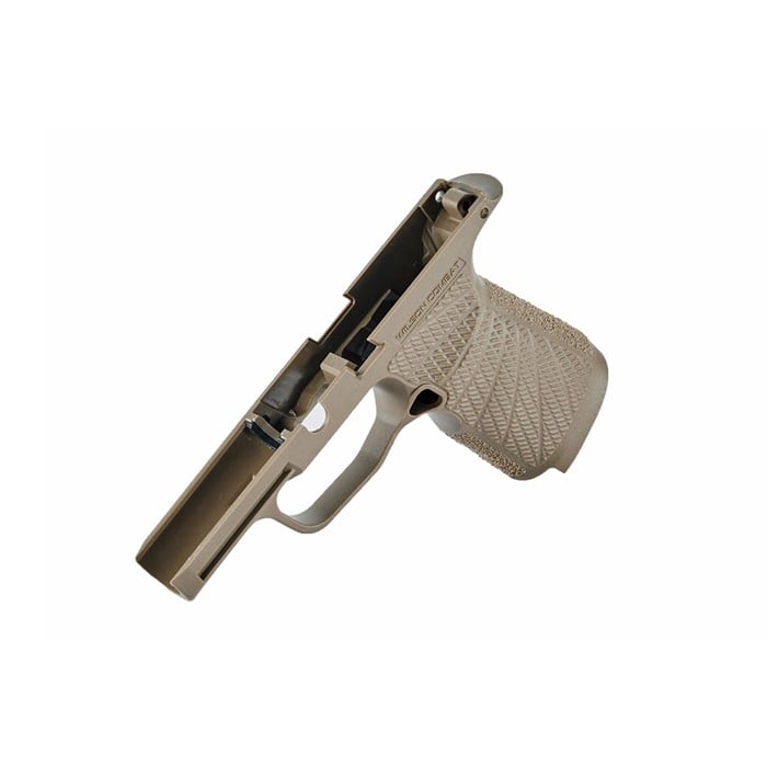 Wilson Combat has reengineered the SIG-SAUER P365/P365 XL grip frame to optimize its practical shooting and concealed carry potential. These all-new molded polymer grip modules will enhance your grip and improve recoil control. The significant improvements in shape, texture, and overall ergonomics will give your P365 the superb feel of an expertly hand sculpted custom gun with a simple grip change. These six new models cover standard and XL P365 frames, with or without a manual safety in black and tan color. Wilson Combat’s fresh look at the P365 grip module incorporates the suggestions of tactical trainers, champion shooters, and firearms experts into the final product that has a look that is unmistakably “Wilson”. It is the most practical, comfortable, and stylish P365 grip available and the ideal choice for concealed carry and defensive handgun use. These are non-serialized, newly manufactured grip modules and are not serial numbered firearms. The Wilson Combat SIG-SAUER P365 Polymer Grip Module features: Upgraded, high-cut 1911-style beavertail grip tang for smooth draws Modified backstrap shape for more natural pointing and enhanced grip and recoil control Undercut front-strap and reshaped, radiused trigger guard for the highest grip possible Improved grip traction and increased grip pattern coverage with Wilson Combat’s exclusive Starburst grip pattern on the sides and aggressive texturing on the front and backstrap Internal Slots for Rod-style Tungsten Weights (Sold separately) Factory SIG-SAUER magazine release, spring, and lock included Compatible with all standard holsters 1.4 oz 6 1/8" long 3 1/8" tall 2" grip (front to back) 1 1/8" grip (side to side) Light Compatability: Streamlight - TLR-6 Tactical Gun Light Streamlight - TLR-7 Sub Ultra-Compact Tactical Gun Light Crimson Trace LTG 772 Lightguard Crimson Trace LTG 422 Sig Sauer Foxtrot365 Surefire XSC Micro-Compact Handgun Light Any light compatible with Sig Factory 365 Modules