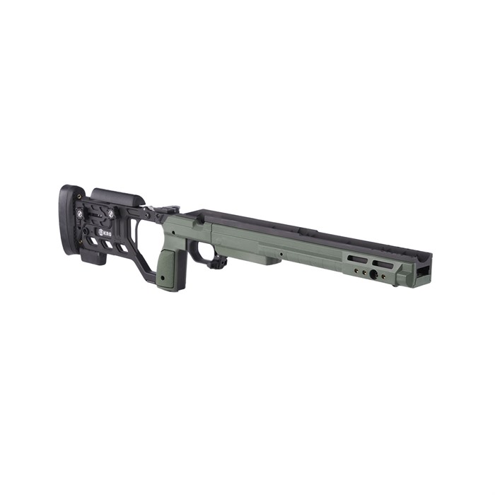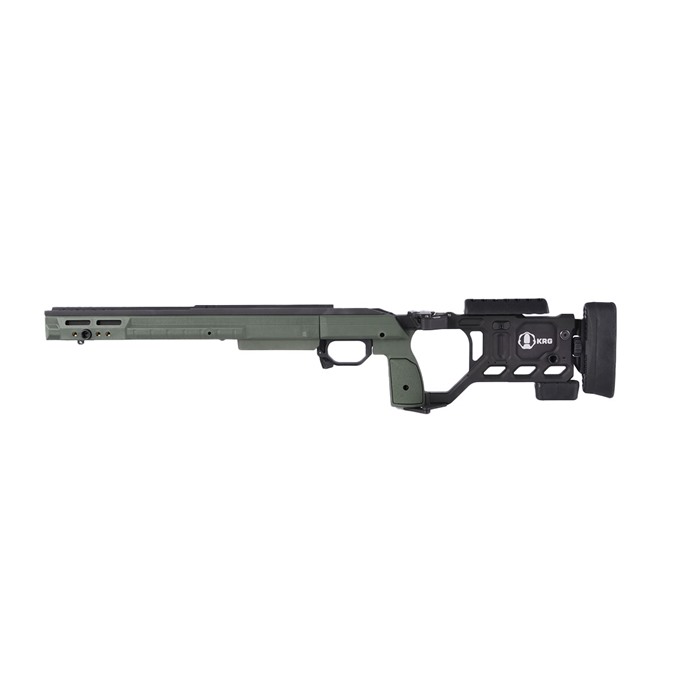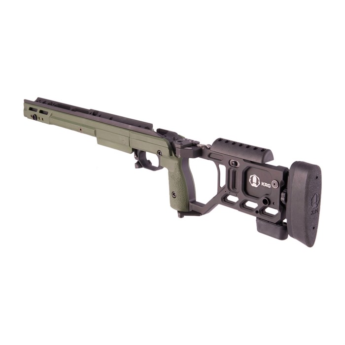 The KRG Whiskey-3 Chassis (W3C) is one of the premier chassis available for your bolt action precision rifle. The W3C combines precise aluminum bedding with tool-less adjustments, durability, and excellent ergonomics. Right out of the box it allows the use of AICS style magazines (not included) in your rifle without any special bottom metal. Numerous types of accessories can be added to the many attachment points, including handstops, sling mounts, rails, bipods, monopods, and more. KRG’s modular grip panels allow the shooter to tailor the fit of the stock to his/her hand which, combined with the other adjustments, yield a stock set up exactly as it needs to be for that particular shooter. The latest Generation (6) features a new length-of-pull locking mechanism that is a bit more streamlined than previous generations and allows for faster adjustments. Remington 700 long action chassis takes AICS pattern 3.850" length magazines.