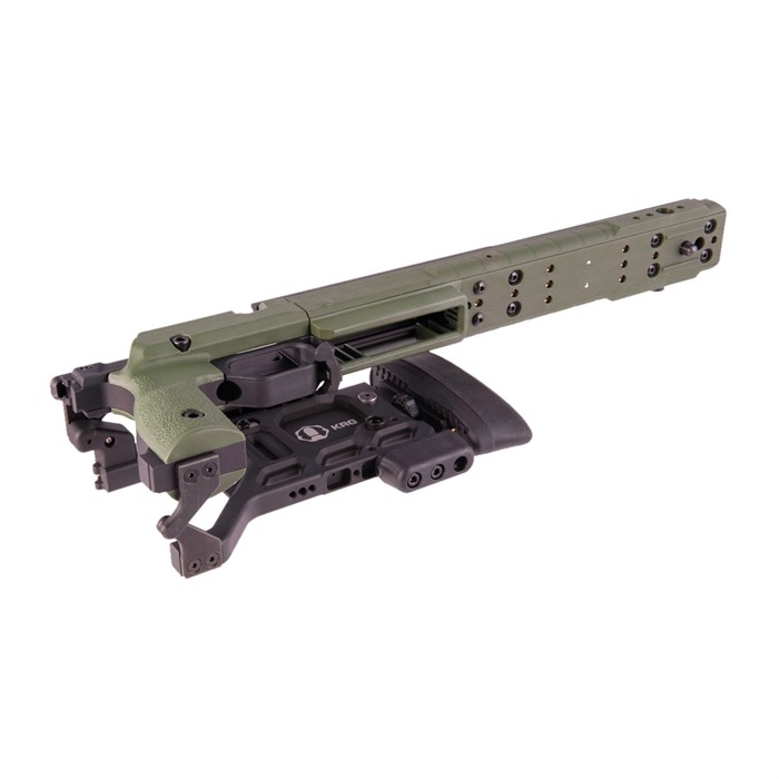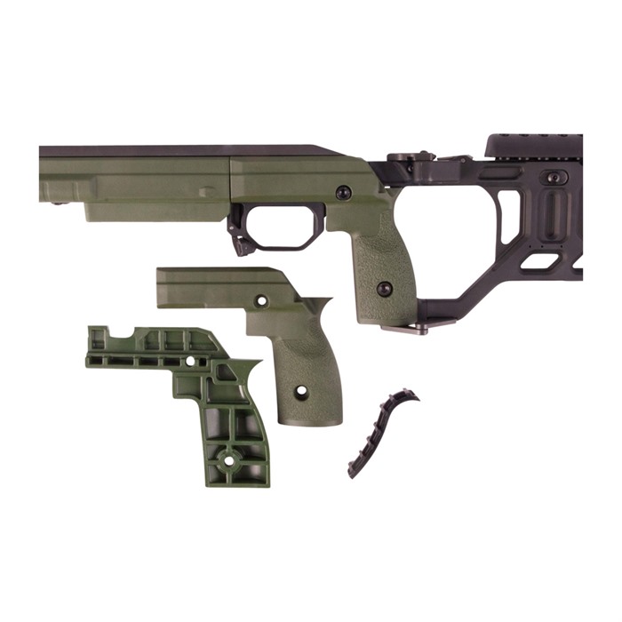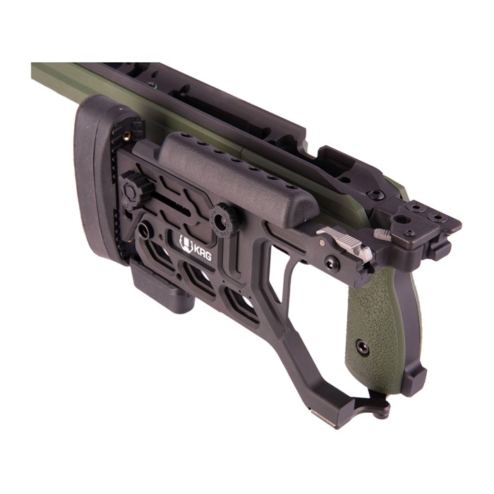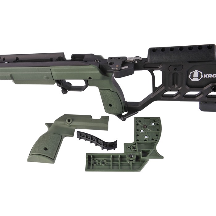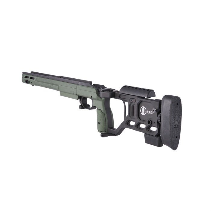 Los paneles de agarre modulares de KRG permiten al tirador adaptar el ajuste de la culata a su mano, lo que, combinado con los otros ajustes, proporciona una configuración de culata exactamente como la necesita ese tirador en particular.