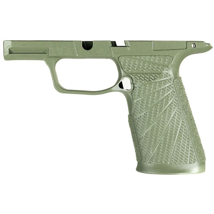 Revolutionize your shooting experience and upgrade the concealed carry potential of a SIG-SAUER P365 XMacro with the Wilson Combat P365 XMacro grip module. This all-new molded polymer grips will not only improve your grasp on the gun but also control recoil better than before. With its redesigned shape, texture, and ergonomics, these models are designed to give you that custom handcrafted feel in no time at all. Available in Black, Gray, Green, and Tan. This fresh look at the P365 XMacro grip module incorporates the suggestions of tactical trainers, champion shooters, and firearms experts into the final product that has a look that is unmistakably "Wilson". They believe it is the most practical, comfortable, and stylish P365 XMacro grip available and the ideal choice for concealed carry and defensive handgun use. Wilson Combat SIG SAUER P365-XMACRO SHORT Polymer Grip Module features: Available colors: Black, Gray, Green and Tan No manual safety Upgraded, high-cut 1911-style beavertail grip tang for smooth draws Modified backstrap shape for natural pointing and enhanced grip and recoil control Undercut front strap and reshaped, radiused trigger guard for the highest grip possible Improved grip traction and increased grip pattern coverage with Wilson Combat’s exclusive Starburst grip pattern on the sides and aggressive texturing on the front and backstrap Internal Slots for Rod-style Tungsten Weights (NW734)* Factory SIG SAUER magazine release, spring, and lock included Compatible with all standard P365-XMACRO holsters & most standard P365 & P365XL holsters P365 accessory / light rail (6.0 inches), fits Standard, X, XMACRO, XL Models** * Not compatible with X-Five Tungsten Weight ** A compatible magazine must be used, XL slides (6.6 inches) will protrude past the end of the dust cover