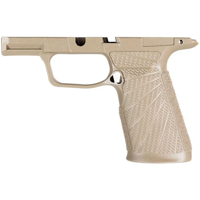 Revolutionize your shooting experience and upgrade the concealed carry potential of a SIG-SAUER P365 XMacro with the Wilson Combat P365 XMacro grip module. This all-new molded polymer grips will not only improve your grasp on the gun but also control recoil better than before. With its redesigned shape, texture, and ergonomics, these models are designed to give you that custom handcrafted feel in no time at all. Available in Black, Gray, Green, and Tan. This fresh look at the P365 XMacro grip module incorporates the suggestions of tactical trainers, champion shooters, and firearms experts into the final product that has a look that is unmistakably "Wilson". They believe it is the most practical, comfortable, and stylish P365 XMacro grip available and the ideal choice for concealed carry and defensive handgun use. Wilson Combat SIG SAUER P365-XMACRO SHORT Polymer Grip Module features: Available colors: Black, Gray, Green and Tan No manual safety Upgraded, high-cut 1911-style beavertail grip tang for smooth draws Modified backstrap shape for natural pointing and enhanced grip and recoil control Undercut front strap and reshaped, radiused trigger guard for the highest grip possible Improved grip traction and increased grip pattern coverage with Wilson Combat’s exclusive Starburst grip pattern on the sides and aggressive texturing on the front and backstrap Internal Slots for Rod-style Tungsten Weights (NW734)* Factory SIG SAUER magazine release, spring, and lock included Compatible with all standard P365-XMACRO holsters & most standard P365 & P365XL holsters P365 accessory / light rail (6.0 inches), fits Standard, X, XMACRO, XL Models** * Not compatible with X-Five Tungsten Weight ** A compatible magazine must be used, XL slides (6.6 inches) will protrude past the end of the dust cover