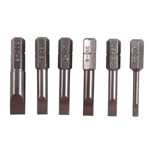 BROWNELL’S WINCHESTER/MARLIN SCREWDRIVER BITS The Brownells Winchester/Marlin Screwdriver Bits are precision-engineered to provide firearm enthusiasts and gunsmiths with the exact tools needed for maintaining and servicing specific Winchester and Marlin models. Each set includes Magna-Tip® bits that are precisely matched to the screws of individual firearm models, ensuring an optimal blade-to-slot fit and minimizing the risk of damage during maintenance. Key Features: Model-Specific Precision: Each set is tailored to fit the screws of specific Winchester and Marlin models, including the Winchester 94 (Top Eject and Angle Eject variants) and the Marlin 336. High-Quality Construction: The Magna-Tip® bits are crafted from hardened steel, ensuring durability and long-lasting performance. Optimal Blade-to-Slot Fit: The precision-ground bits provide a perfect fit for each screw, reducing the likelihood of slippage or marring during use. Specifications: Compatibility: Available for various models, including: Winchester 97 - (4) Bits 120-3, 150-3, 180-3, 300-3 Marlin 336 - (6) Bits 120-3, 180-3, 180-4, 240-3, 270-3, 300-4 Rossi/ Winchester 92 - (7) Bits 150-4, 180-3, 180-5, 210-4, 270-4, 300-5, 340-5 Winchester 94 Angle Eject - (5) Bits 120-1, 300-5, 445-0, 445-10, 445-20 Winchester 94 Top Eject - (6) Bits 120-5, 180-3, 210-3, 210-4, 210-5, 300-3 Bit Composition: Hardened steel Magna-Tip® bits Handle: Compatible with Brownells Magna-Tip® handles (sold separately) Customer Insights: Our customers appreciate the Brownells Winchester/Marlin Screwdriver Bits for their precise fit and high-quality construction. Many find that these bits significantly reduce the risk of damaging screws during maintenance, thanks to their exact blade-to-slot alignment. The durability of the hardened steel ensures long-term use, making them a valuable addition to any gunsmith's toolkit. Incorporating the Brownells Winchester/Marlin Screwdriver Bits into your firearm maintenance routine ensures that you have the right tools for the job, providing confidence and precision when working on your Winchester or Marlin firearms.