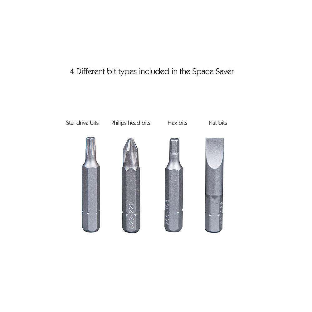 Este set es del tamaño ideal para incluirlo en tus viajes al campo de tiro o al rango. Viene equipado con puntas estándar, Phillips, hexagonales y Torx. Además, incluye una punta Phillips #2 de 2" de largo, que es ideal para la instalación de almohadillas de retroceso, y una punta de conversión de hexágono a cuadrado que te permite usar enchufes de 1/4" y otros accesorios.
